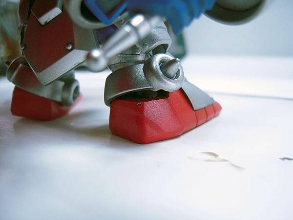 因為平常做戰車,可動部份不多的關係,所以刮漆不嚴重,問題是這回做的是BB戰士,想當然爾刮漆問題就出現了。那這次我在處理的時候幾乎沒考慮這問題,所以後果嚴重啊...下次要小心,主要補救方法就是要磨掉干涉部份或磨薄零件來抵消漆磨厚度增加的影響。